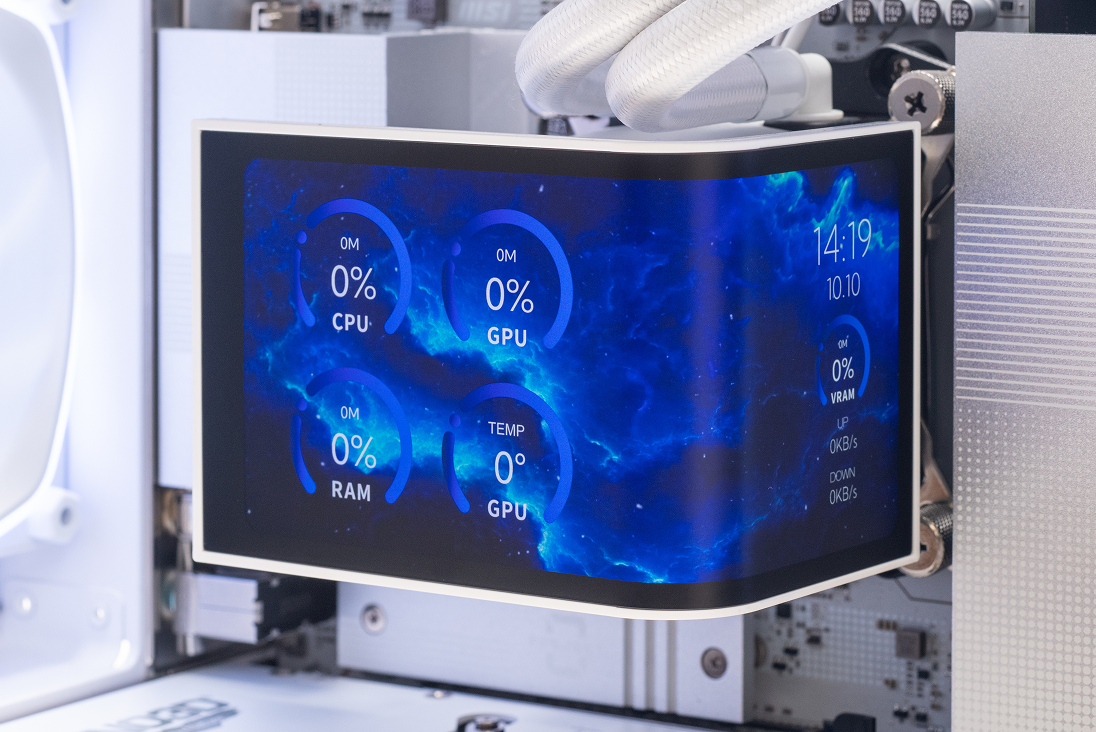 ウォーターブロック部に配された曲面ディスプレイは、内部の美しさを際立たせるとともに、PCのステータス表示や、お好みの画像・動画のカスタマイズ表示に対応しユーザーの個性を表現します。