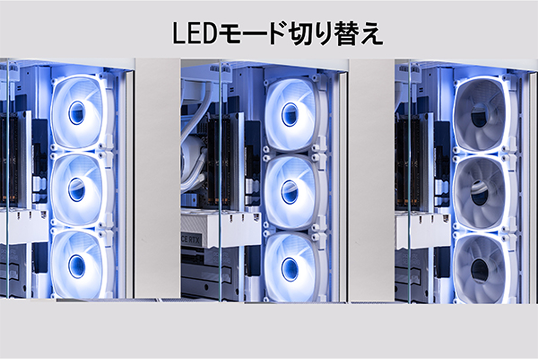 ゲームシーン、動画編集、エンコードといったCPUに高い負荷がかかる作業でも3基のファンを通して冷却を行い、CPUの熱を効率よく排出することにより安定した動作を実現します。